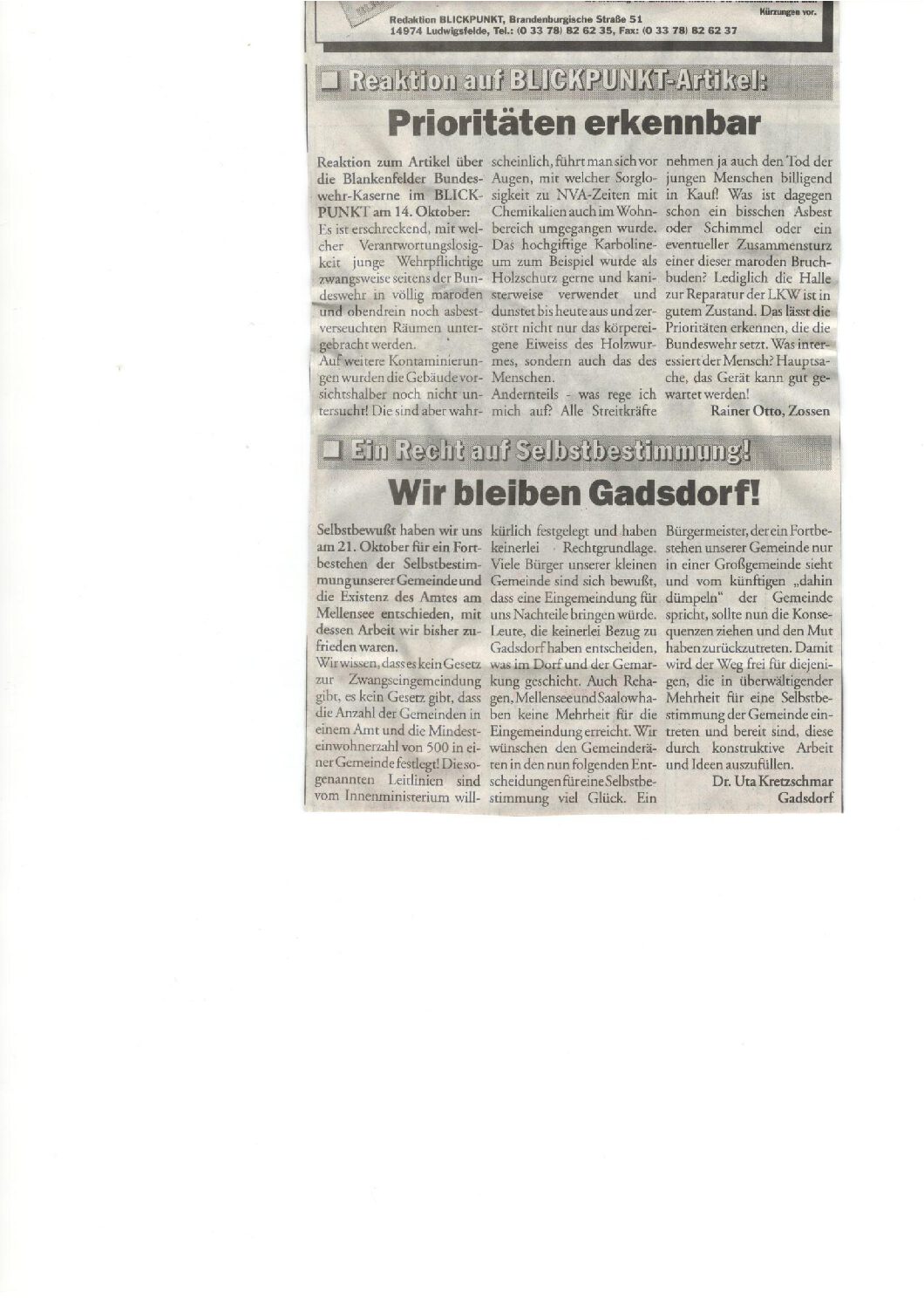 Beitrag von Frau Dr. Kretschmar zur Gemeindefusion