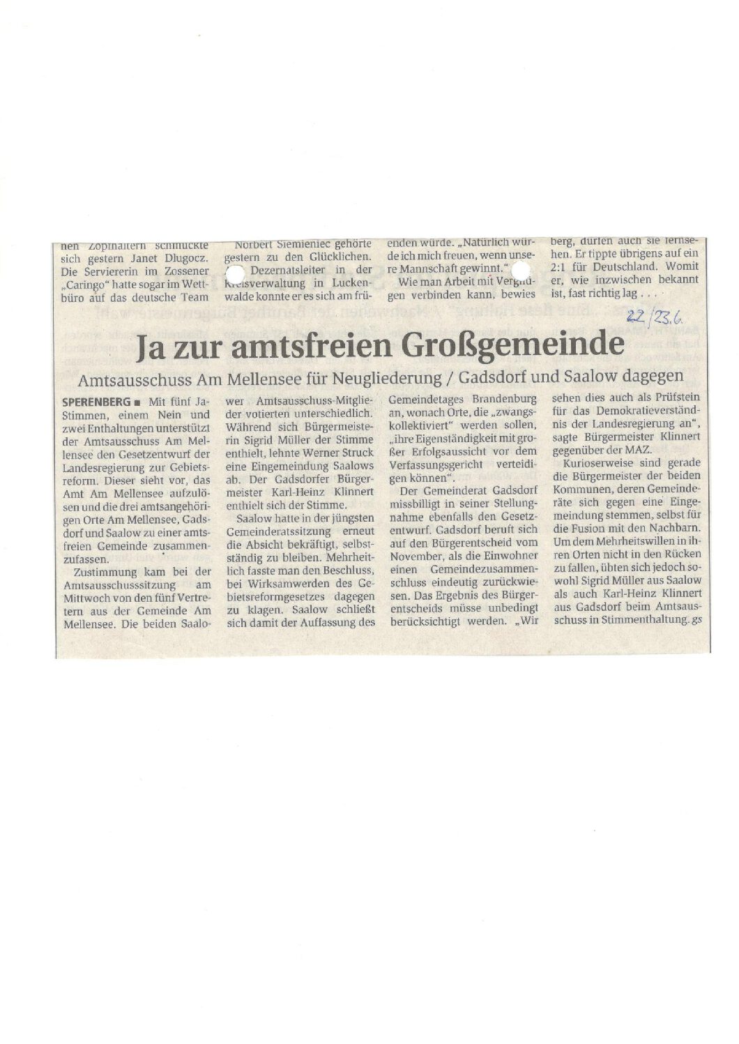 Gadsdorf gegen Großgemeinde