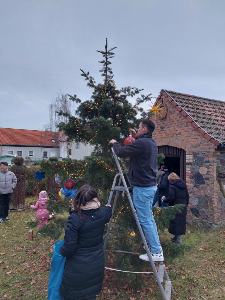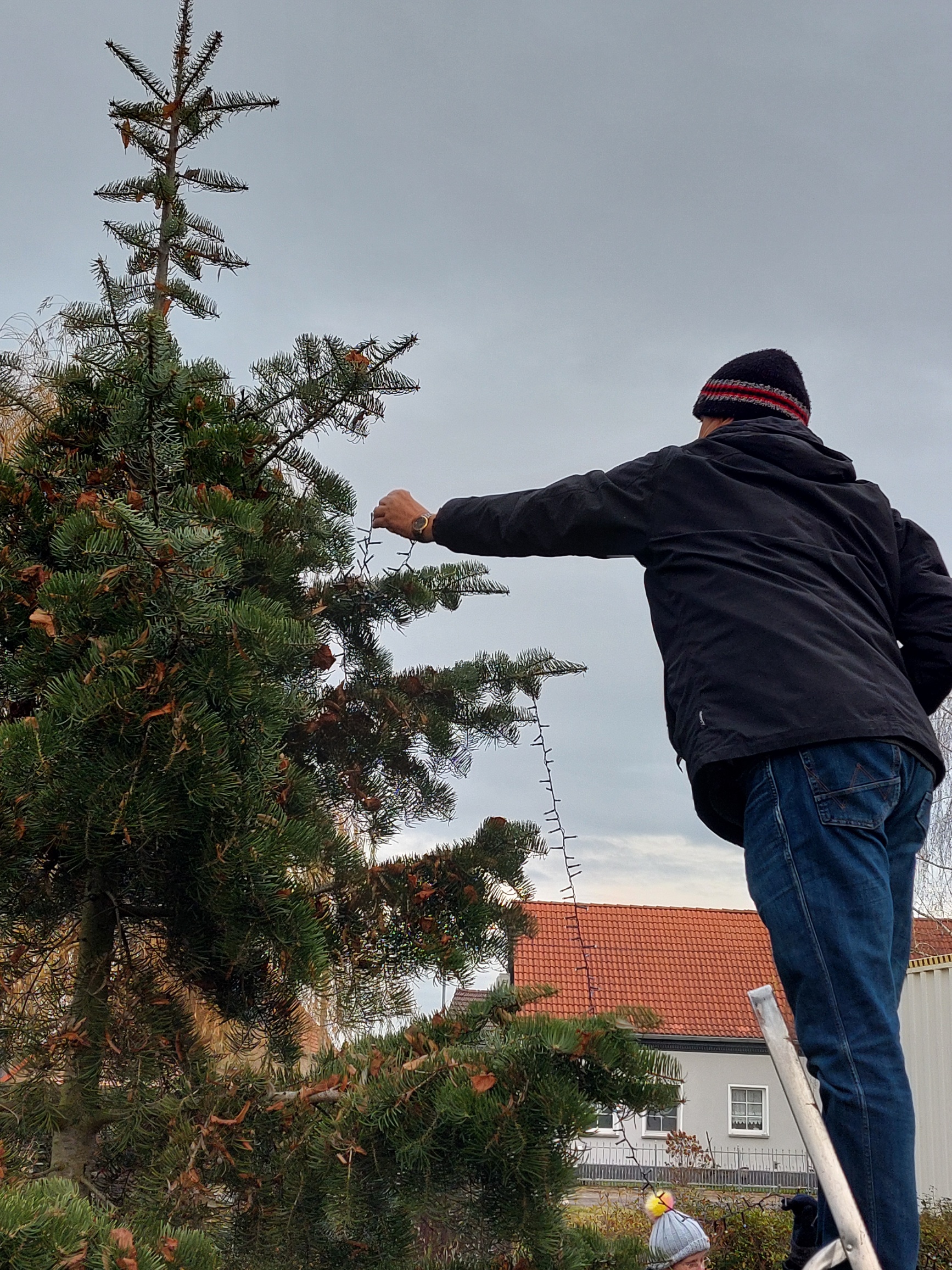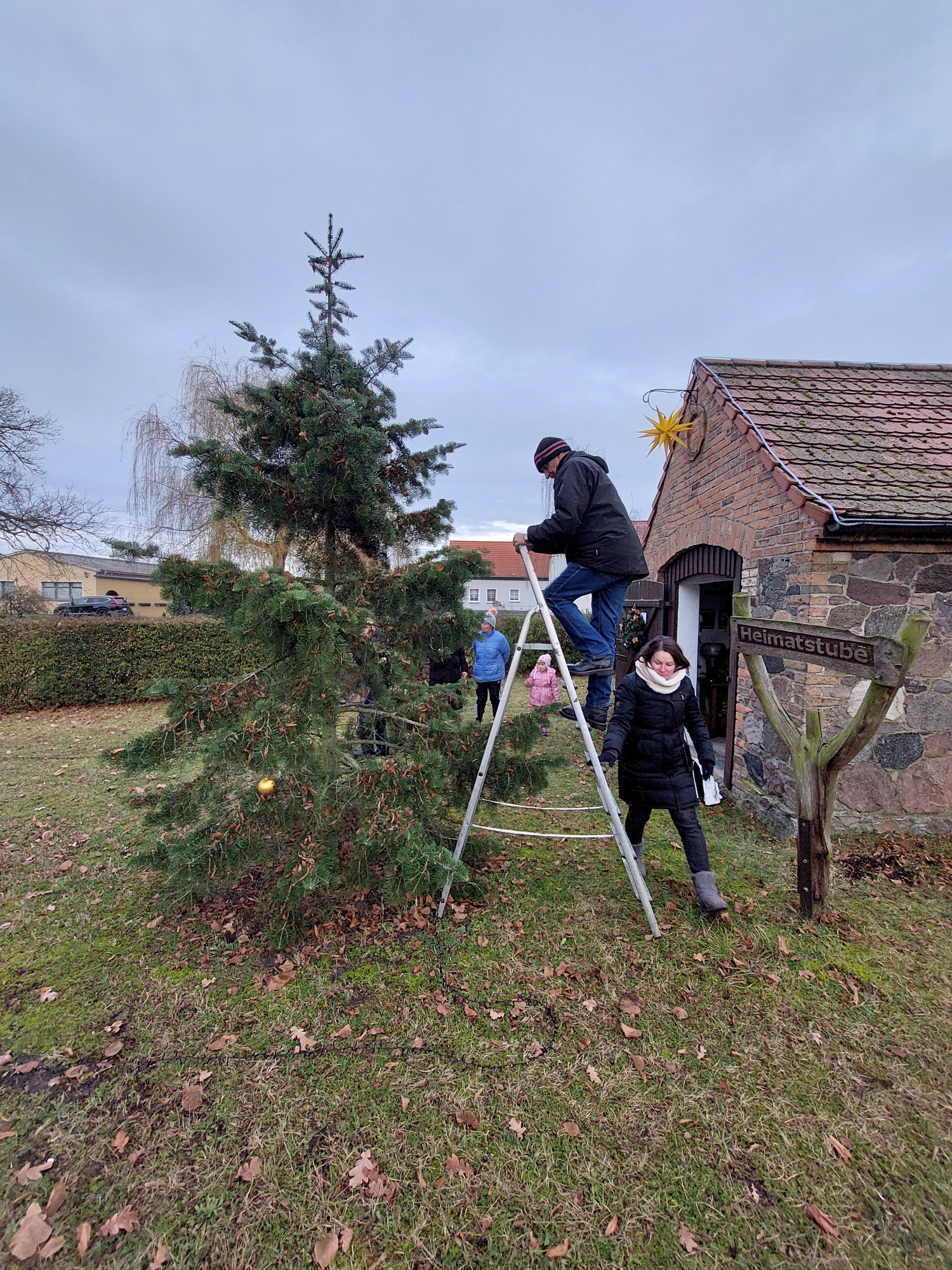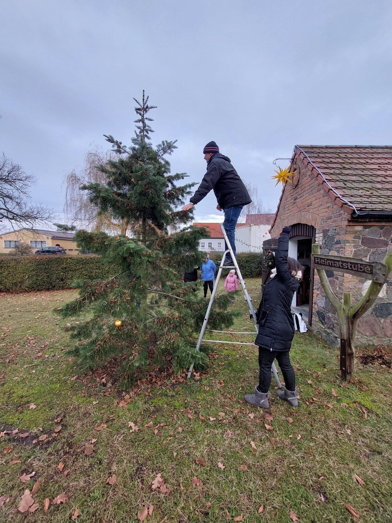 Noch nie kamen so viele Gadsdorferinnen und Gadsdorfer und vor allem auch so lange – von 15:00 – 19:00 Uhr – zusammen, um den Weihnachsbaum zu schmücken. Ein neuer Gadsdorfer Rekord!! Aber wenn die Rahmenbedingungen stimmen – gutes Wetter, Glühwein und Tee, Kuchen und Schmalzstullen – tja, da konnte man einfach nicht anders, als zusammenzukommen und sich weihnachtlich einstimmen zu lassen. Danke all denjenigen, die auch das wieder vorbereiteten und organisierten!