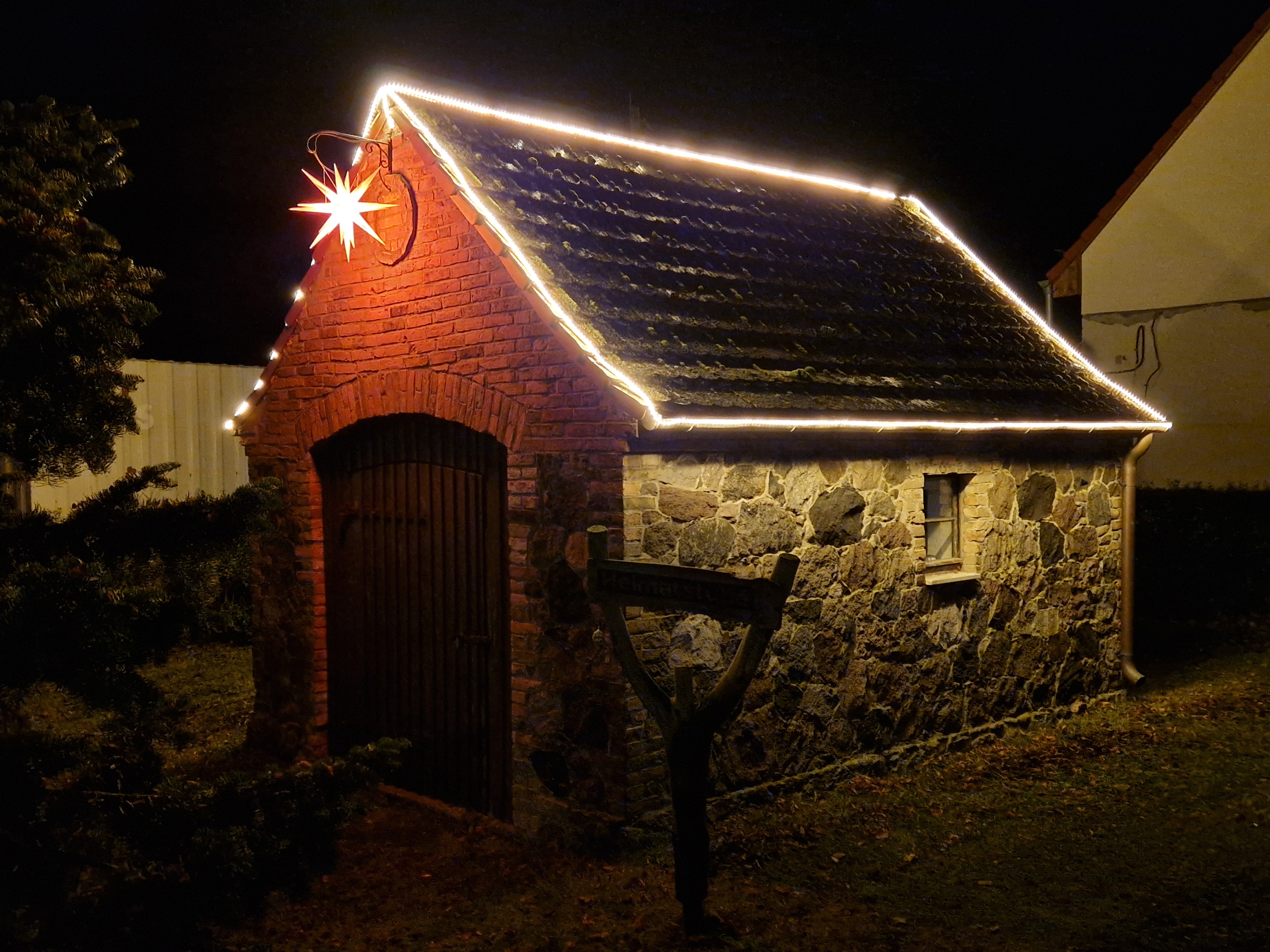 Es wurde an der Zeit, die alten Lichterketten an der Sitzraufe und der Heimatstube zu erneuern. Der Heimatverein Gadsdorf e. V. veranlasste dies rechtzeitig zur Vorweihnachtszeit. Fürs nächste Jahr ist für die Schutzhütte auf dem Festplatz geplant, auch sie festlich zu illuminieren.