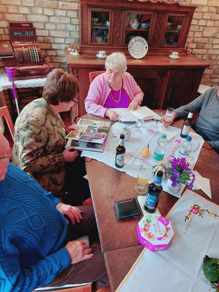 Wir trafen uns in der Waldschänke in Kummerdorf-Alexanderdorf zu Kaffee, Kuchen und einem leckeren Abendessen. Gemeinsam plauderten wir über alte Zeiten, stöberten in den Jahresbüchern von Gadsdorf und ließen viele schöne Erinnerungen aufleben.