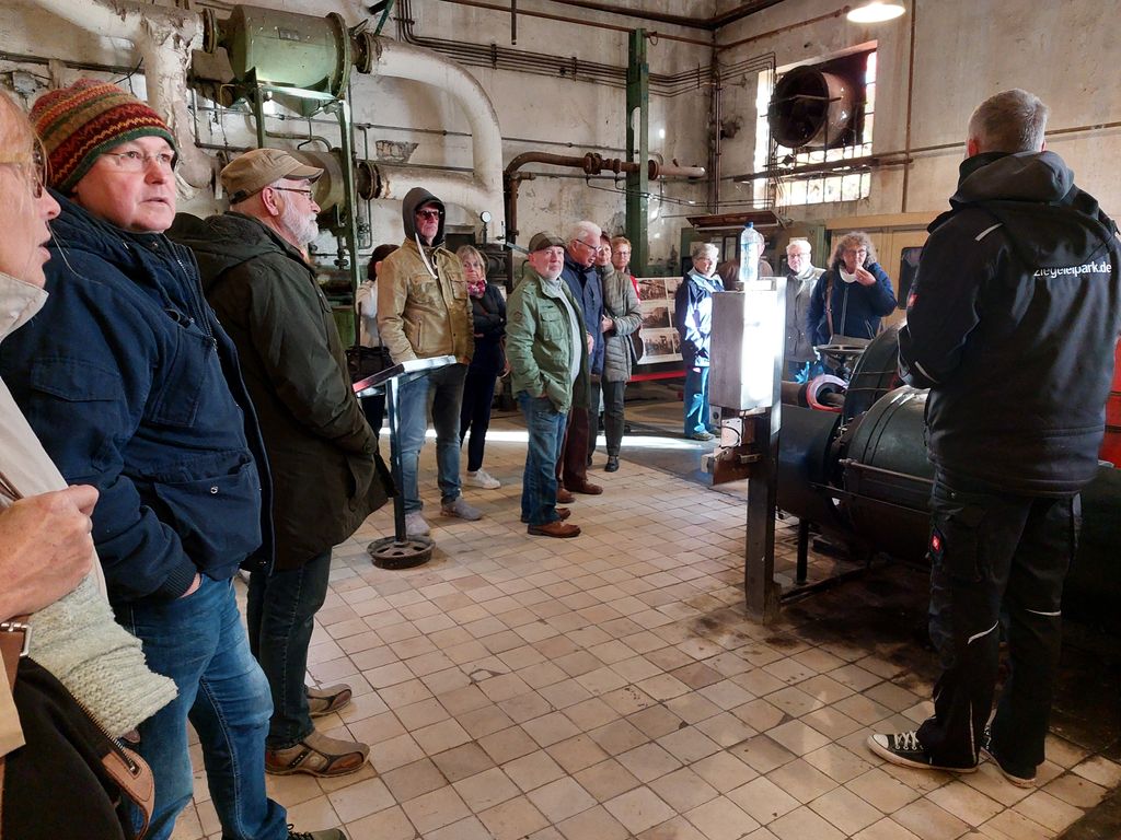 Gestärkt machten wir uns dann auf den Weg zum Ziegeleipark Mildenberg. Mit einer kleinen Bahn fuhren wir über das weitläufige Industriedenkmalgelände und erfuhren, wie mühsam die Herstellung eines Ziegels in früheren Zeiten war – alles echte Handarbeit!