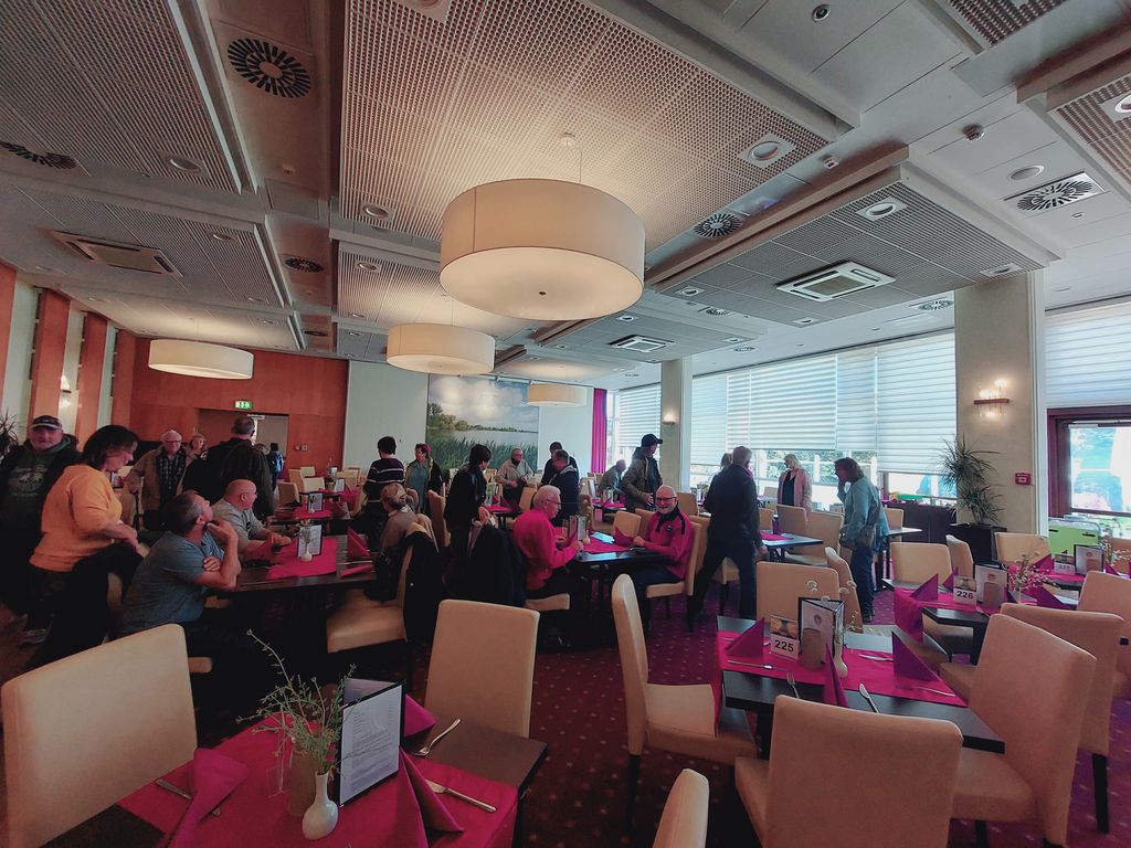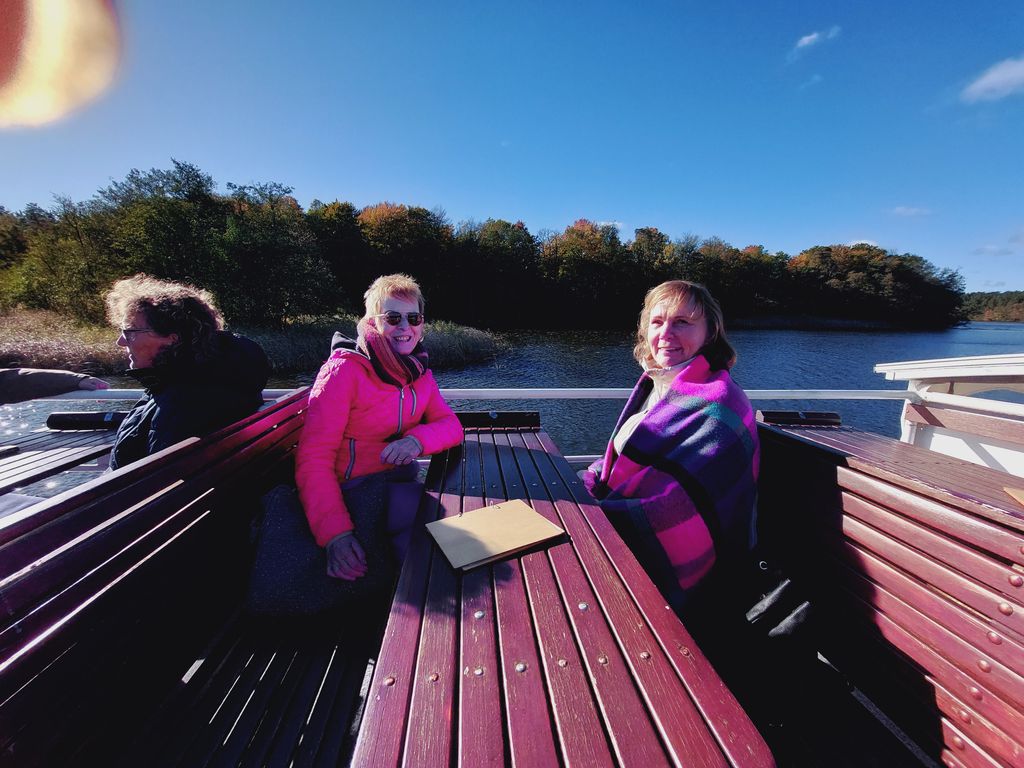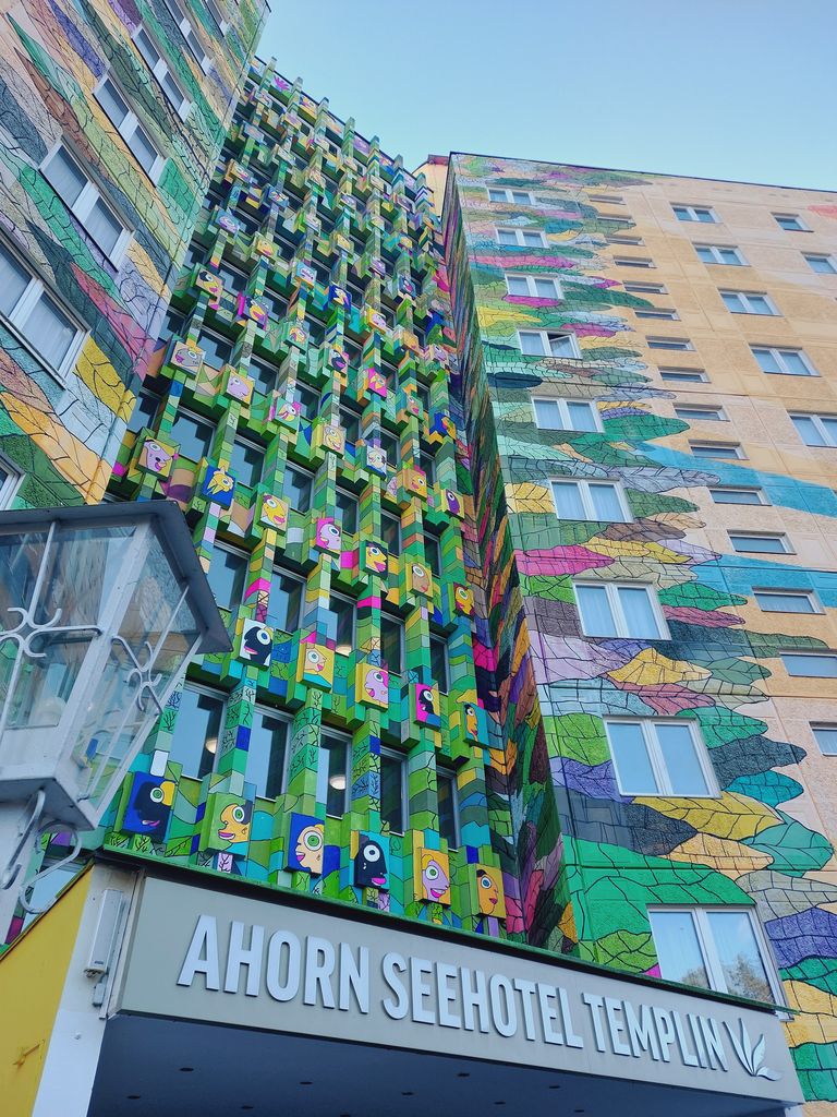In Templin angekommen, „legte“ unser Bus sozusagen an – denn weiter ging es mit dem Dampfer über die idyllischen Seen der Region. Anschließend kehrten wir im Ahorn Seehotel Templin zum Mittagessen ein. Dabei konnten wir die beeindruckende Gestaltung des Hotels bestaunen: Es ist das größte Hotel im Land Brandenburg und trägt zugleich das größte Fassadenkunstwerk Europas.