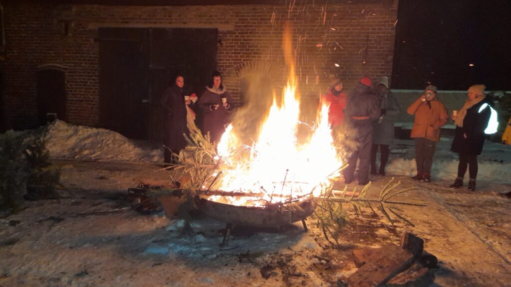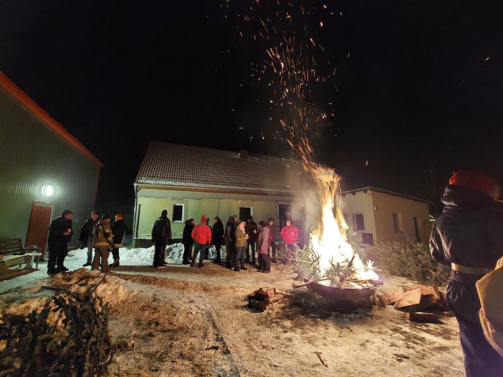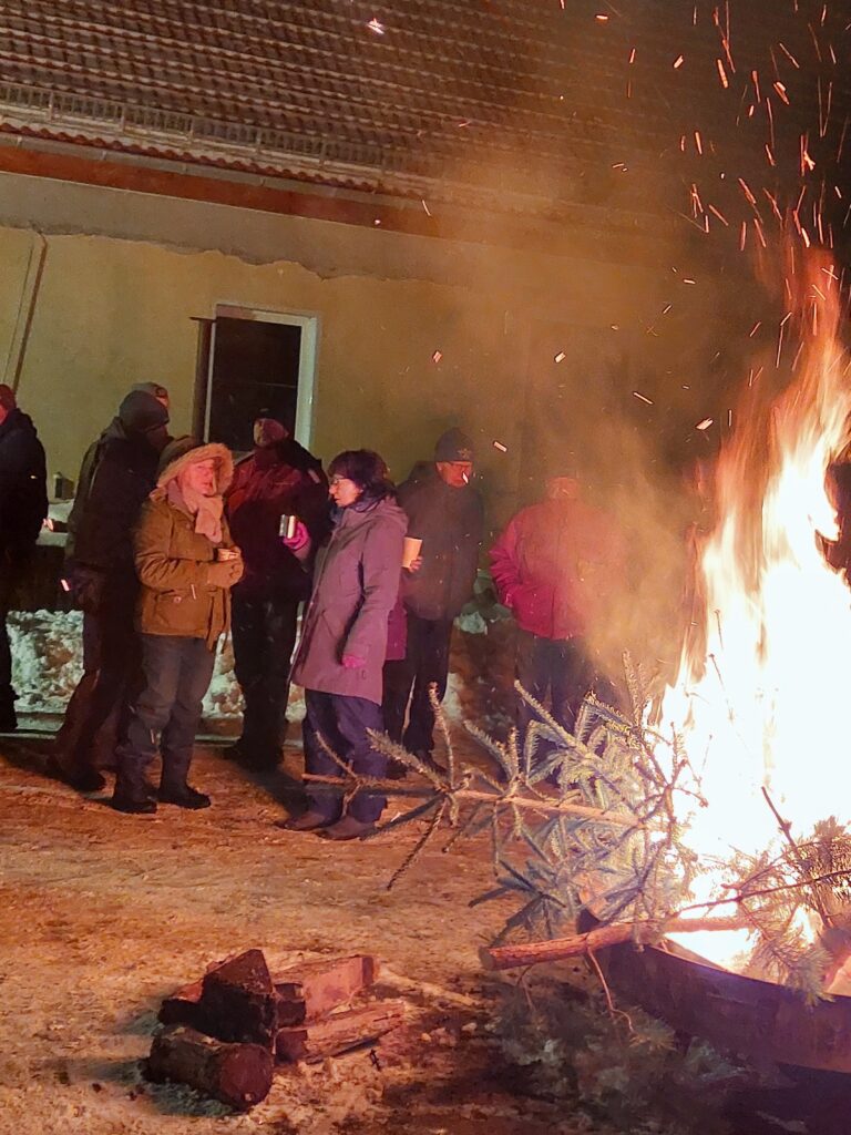 Am 10.01.2026 trafen wir uns zu einer gemütlichen Runde an der Feuerschale. Mitgebrachte Weihnachtsbäume sorgten für ein schönes, loderndes Feuer. Die Kameraden der Feuerwehr hatten alles bestens vorbereitet – mit Glühwein, weiteren Getränken und leckerer Wurst im Brötchen. Wem es draußen zu kalt wurde, konnte sich im Bereich der Feuerwehr aufwärmen. Insgesamt waren 38 Gäste und 4 Kinder dabei – wenn wir richtig gezählt haben. Ein rundum gelungener Abend!