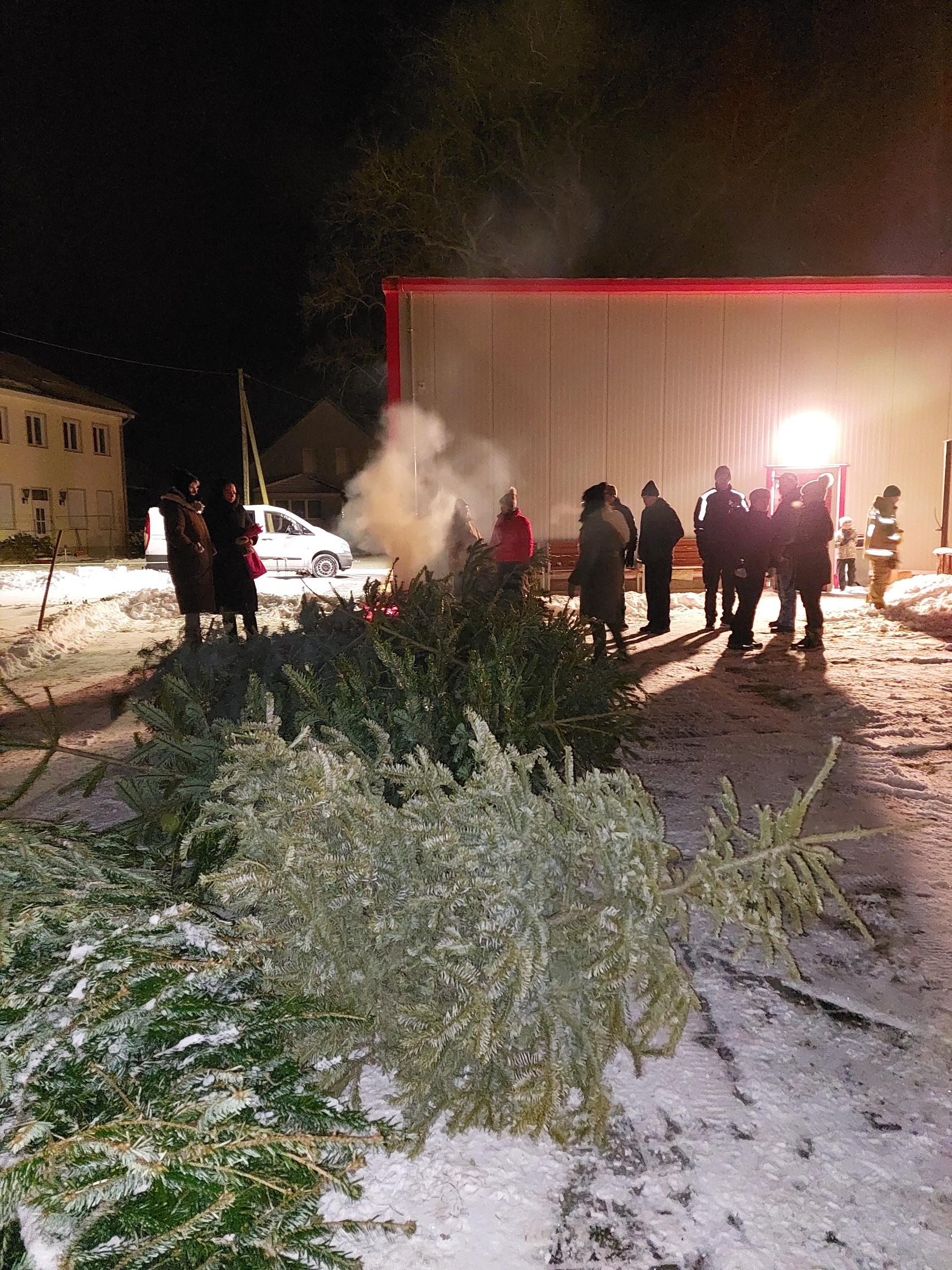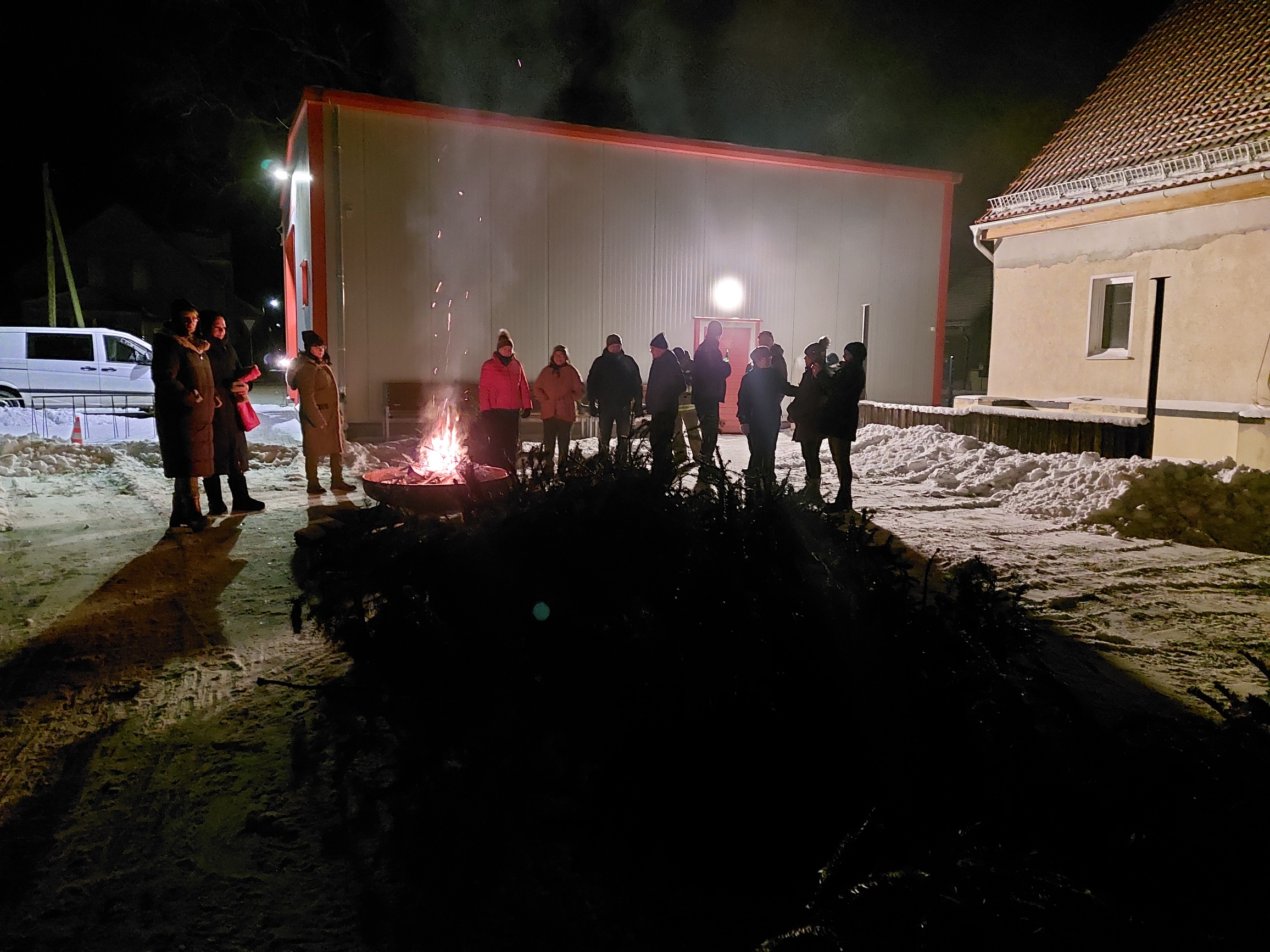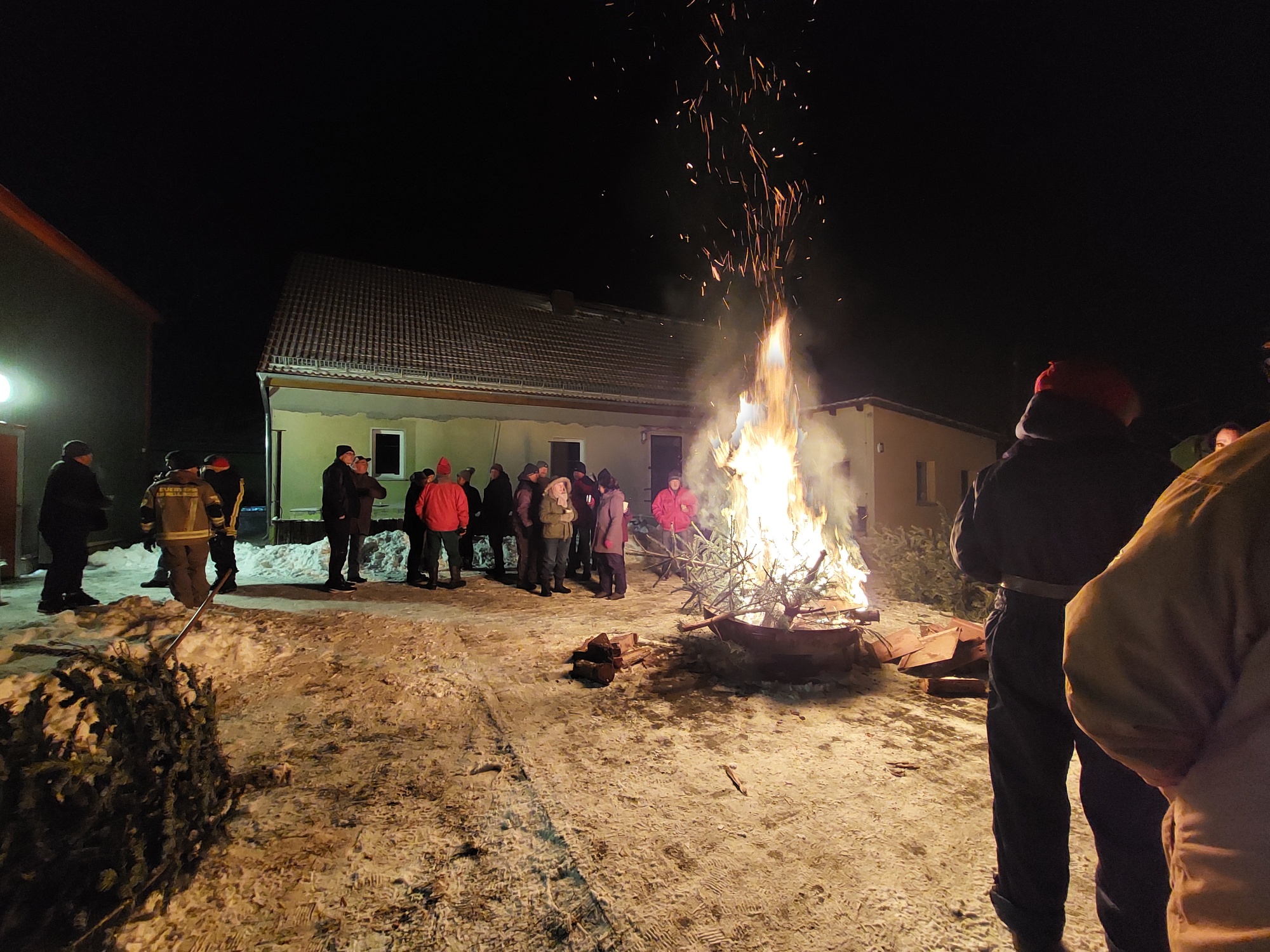 Am 10.01.2026 trafen wir uns zu einer gemütlichen Runde an der Feuerschale. Mitgebrachte Weihnachtsbäume sorgten für ein schönes, loderndes Feuer. Die Kameraden der Feuerwehr hatten alles bestens vorbereitet – mit Glühwein, weiteren Getränken und leckerer Wurst im Brötchen. Wem es draußen zu kalt wurde, konnte sich im Bereich der Feuerwehr aufwärmen. Insgesamt waren 38 Gäste und 4 Kinder dabei – wenn wir richtig gezählt haben. Ein rundum gelungener Abend!