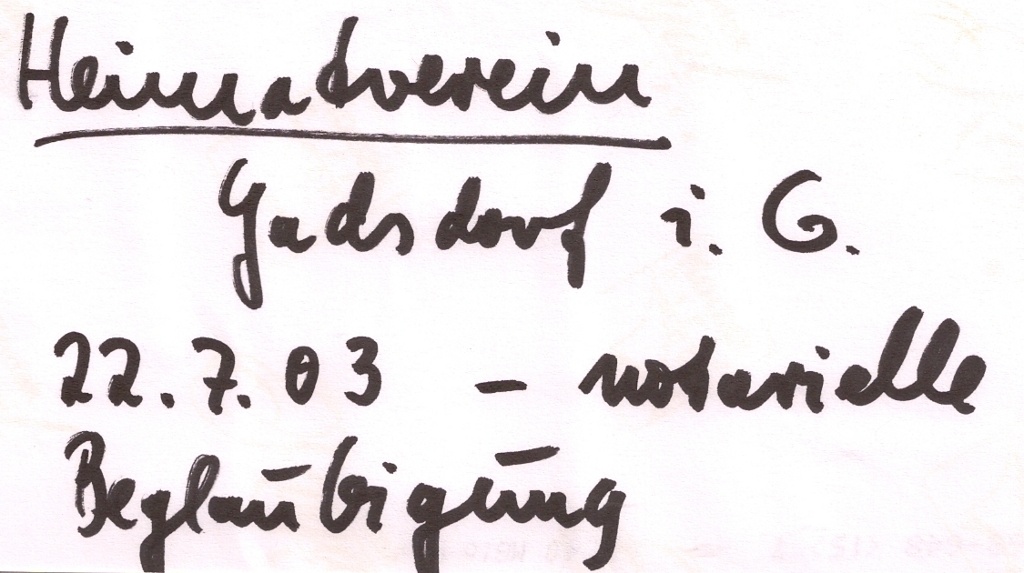 Am 22. Juli 2003 wurde der Heimatverein Gadsdorf gegründet.