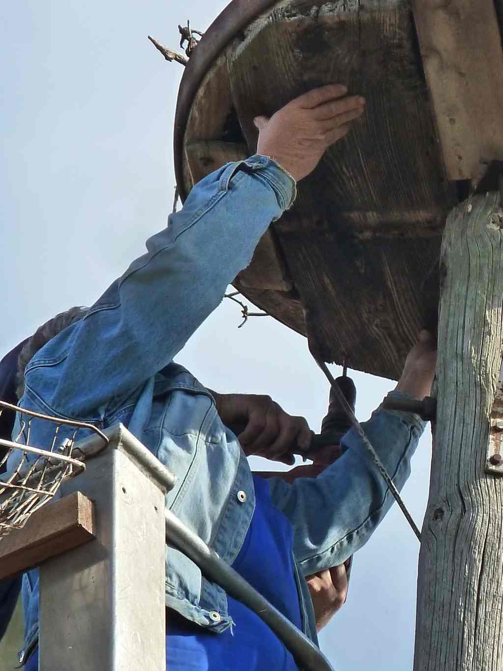 Zum Herbstputz wurde eingeladen – und viele Gadsdorfer kamen. Dringend erforderlich war wieder einmal, das Storchennest herzurichten. Zu viel verrottetes Nistmaterial lag im Nest, als dass eine Eiablage möglich sein würde. Dabei wurde auch festgestellt, dass der ganze Horst einschließlich der Aufständerung sehr marode ist und demnächst ersetzt werden muss, will man auch zukünftig den Storch in Gadsdorf halten. Somit ist eine neue Aufgabe geboren worden …